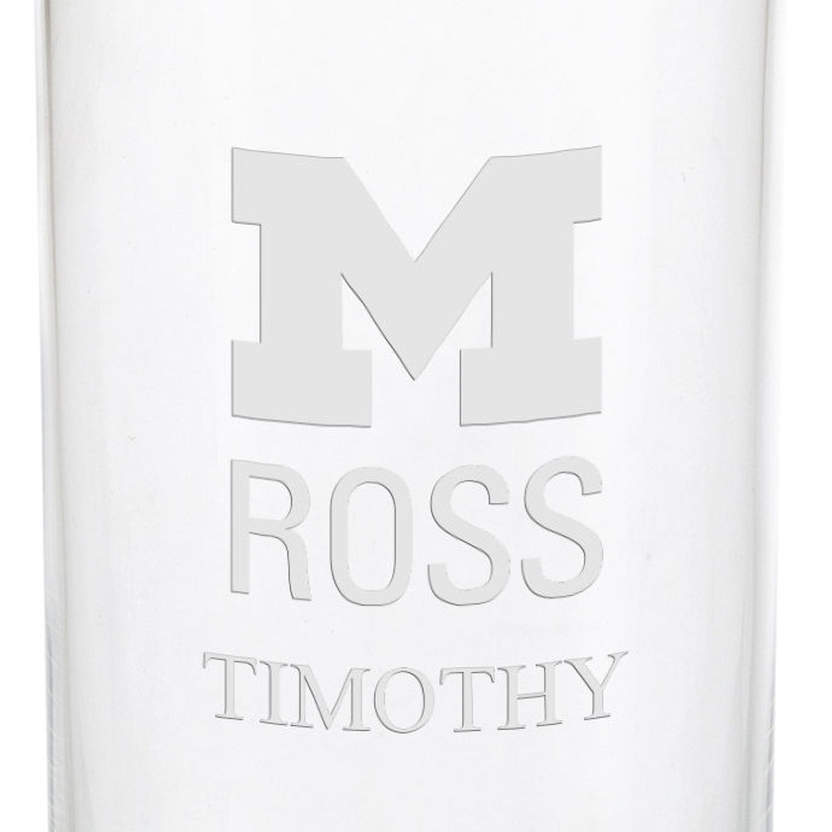 Ross School of Business iced beverage glasses have the Michigan Ross logo deep-etched on each glass. Generously proportioned 16-ounce glasses are a pleasure to hold.