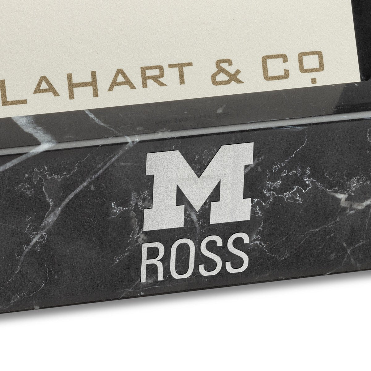 Perfect for new grads and seasoned professionals, the officially licensed Ross School of Business marble cardholder is an essential for the desk of Michigan Ross fans. The Michigan Ross logo is elegantly featured on the front of this substantial, solid marble card holder and accommodates all standard size business cards.