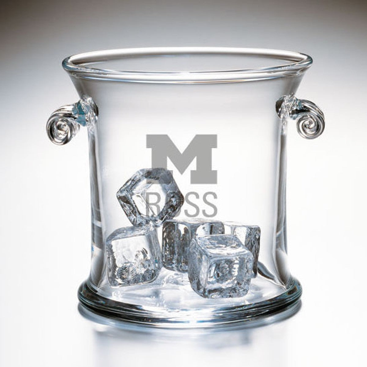 The Michigan Ross Glass Ice Bucket, with its beautifully etched Michigan Ross logo, is perfect for keeping wine chilled on an elegant table.