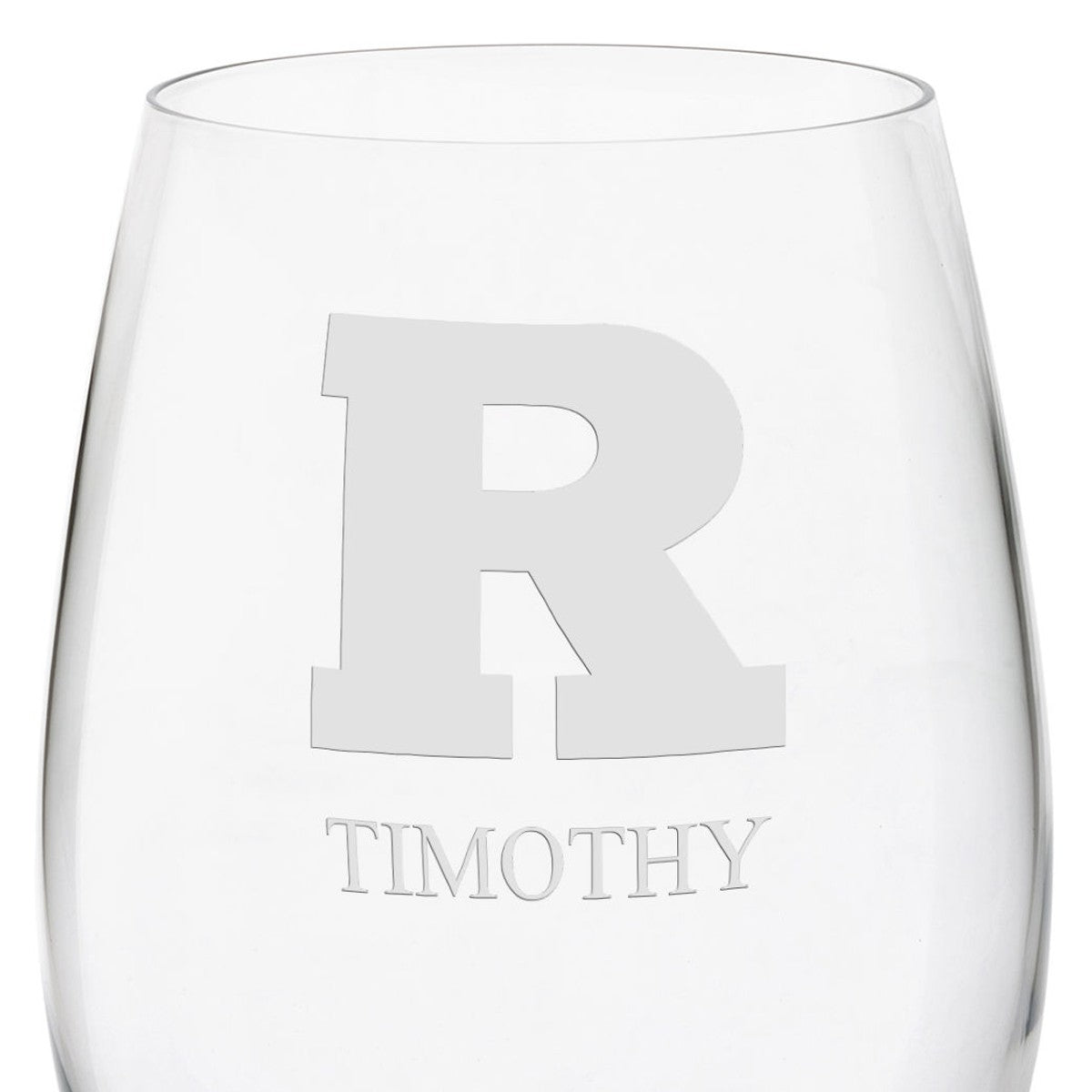 Fine Rutgers University wine glasses are an elegant touch for your table or bar. The Rutgers logo is deep-etched on each glass.