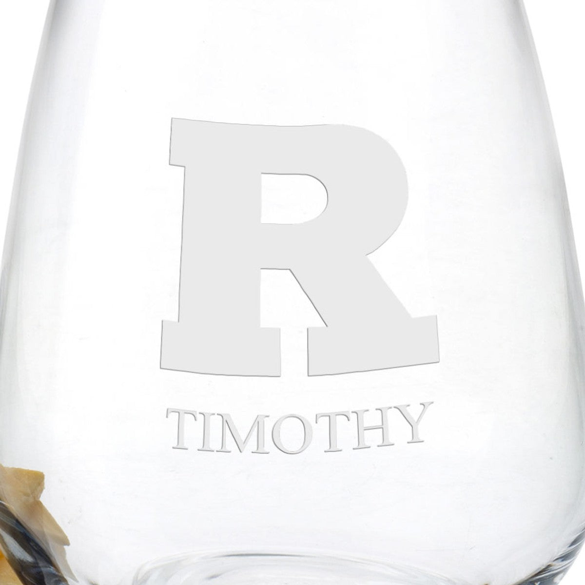 Contemporary Rutgers University stemless wine glasses bring an elegant touch to your table or bar. The Rutgers logo is deep-etched on each glass.