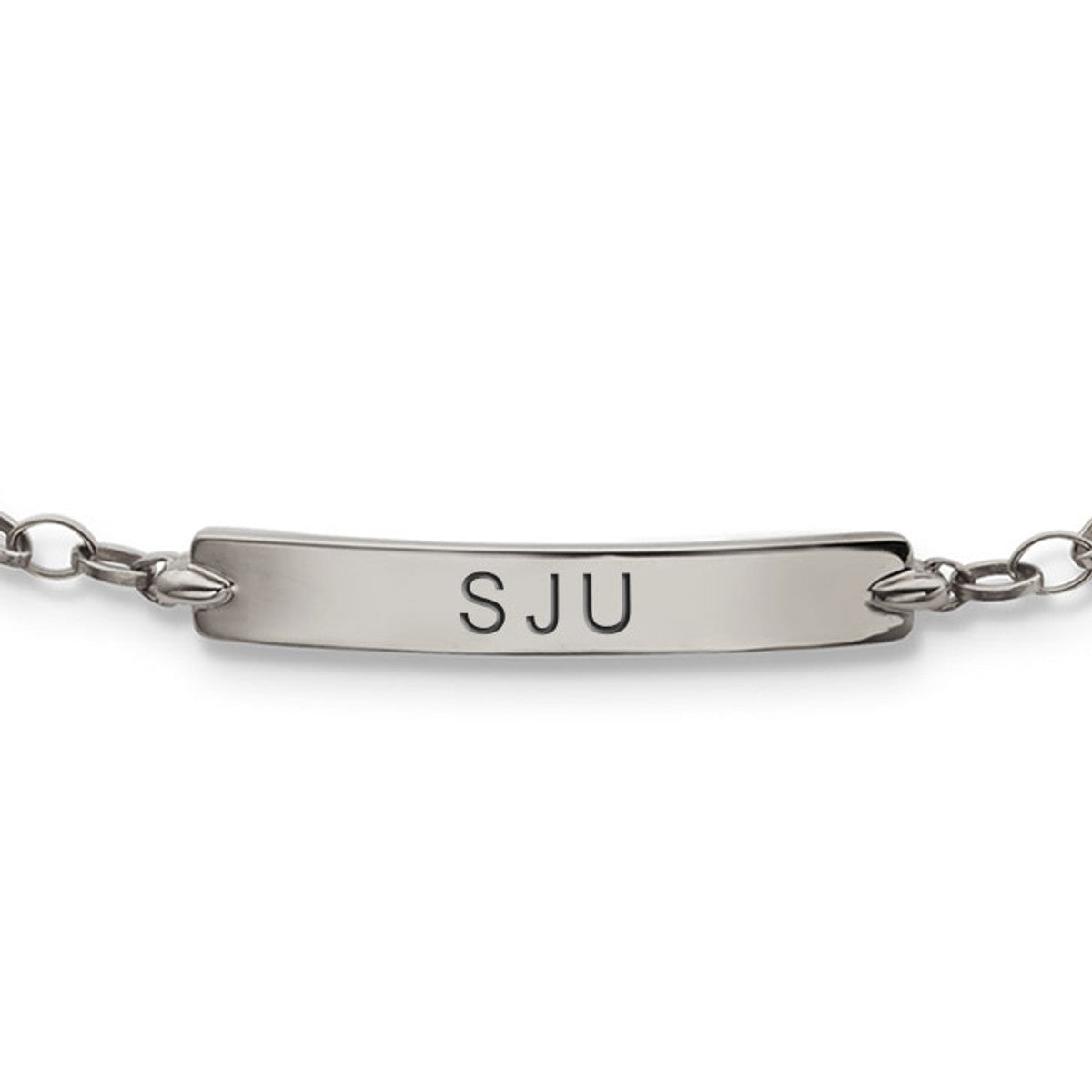 A feminine, delicate bracelet in sterling silver as appropriate for evening wear as day. "SJU" engraved on slim banner accentuates the elegance.