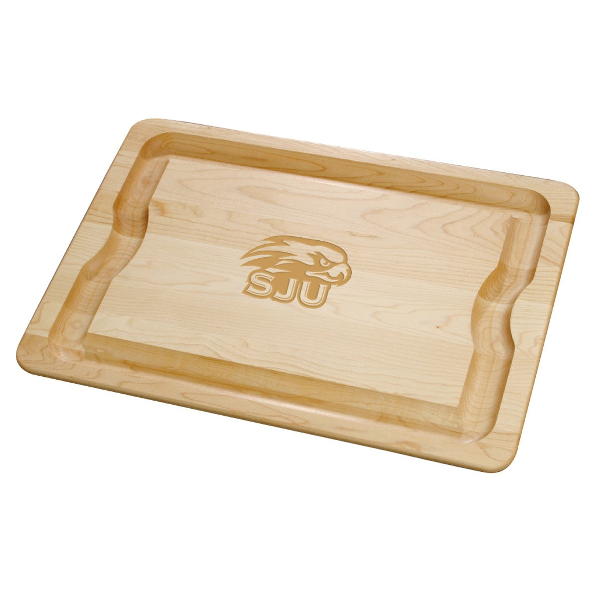 The Saint Joseph's University Maple Cutting Board is crafted from sturdy Maple with undercut handles and a wide groove to collect juices while you carve. Ample surface featuring the Saint Joseph's University Logo is suitable for both cutting and serving.