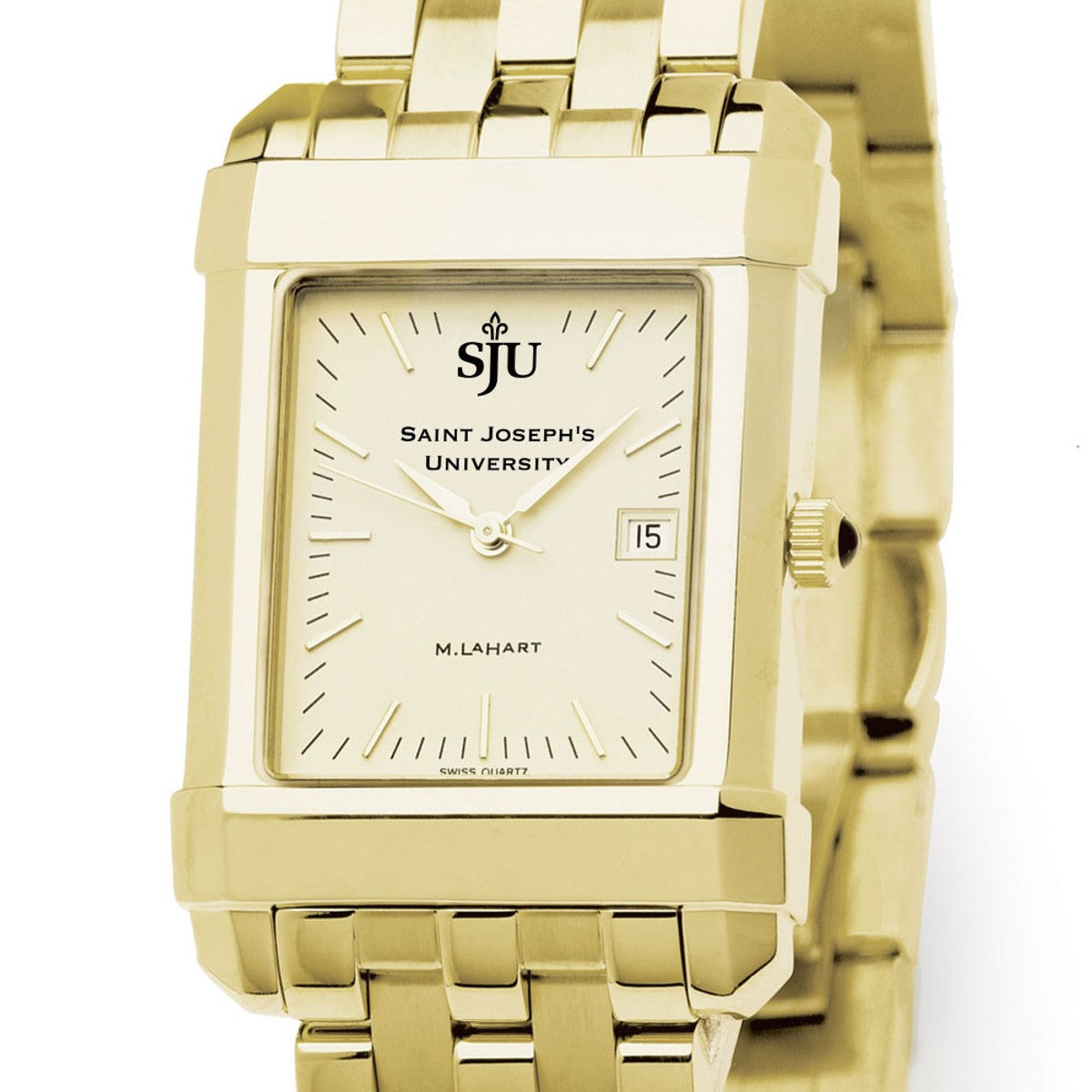 Saint Joseph's University men's gold watch featuring the Saint Joseph's University Logo on cream dial. Free Engraving on all watches.