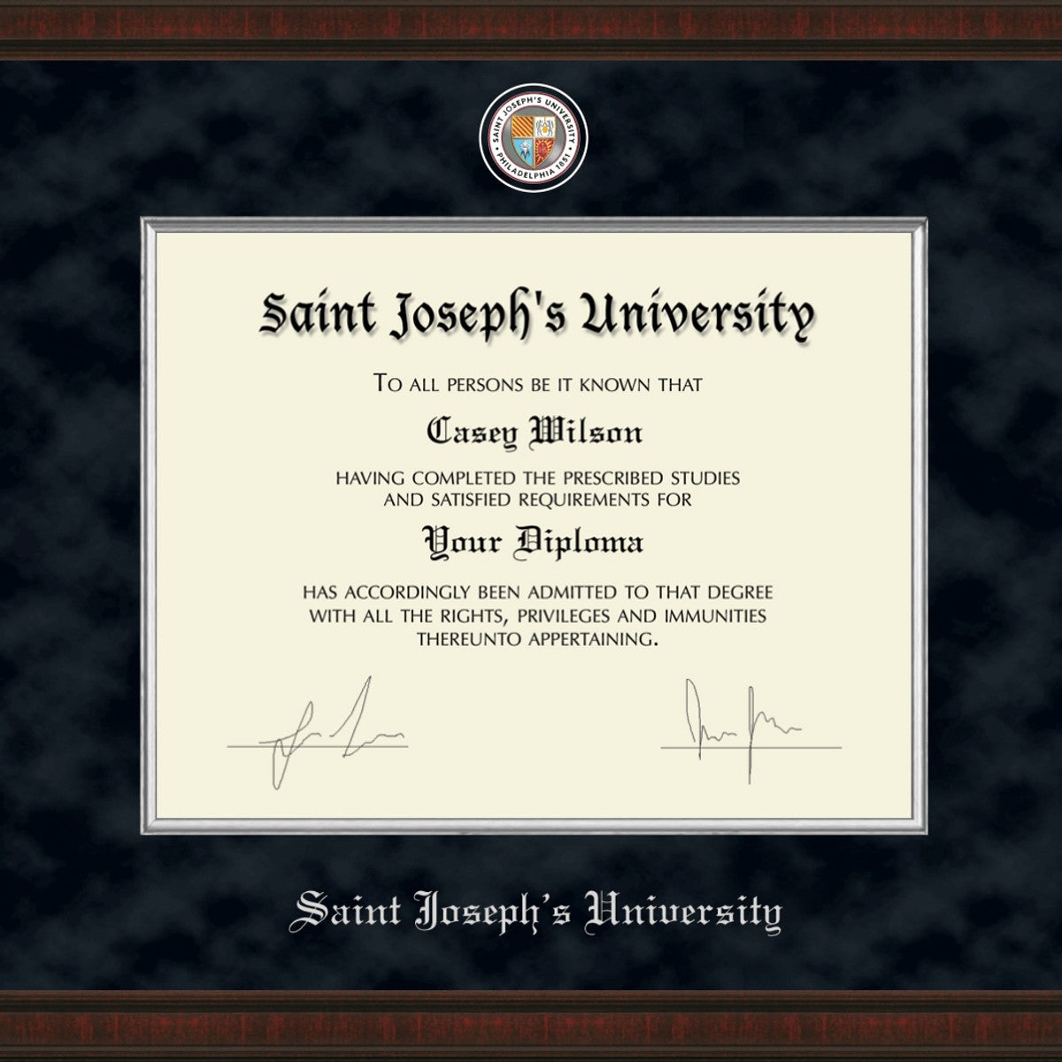 This Saint Joseph's University diploma frame is specifically made to showcase and preserve your Saint Joseph's University Diploma. Made from solid wood in the USA to meet stringent Library of Congress standards for archival document preservation.