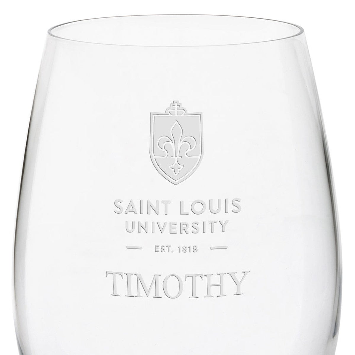 Fine Saint Louis University wine glasses are an elegant touch for your table or bar. The SLU logo is deep-etched on each glass.
