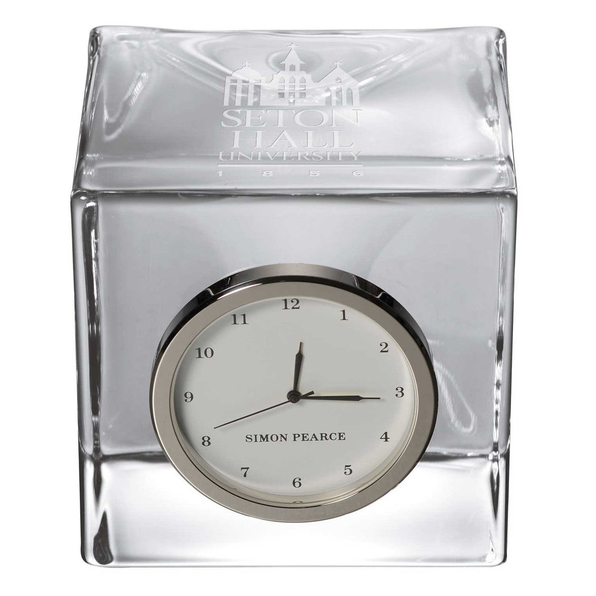 The Seton Hall University Glass Desk Clock is distinctly etched with the Seton Hall Logo, and is a great addition to any surface. The clock includes a traditional numbered face with a sweep hand to count the seconds.