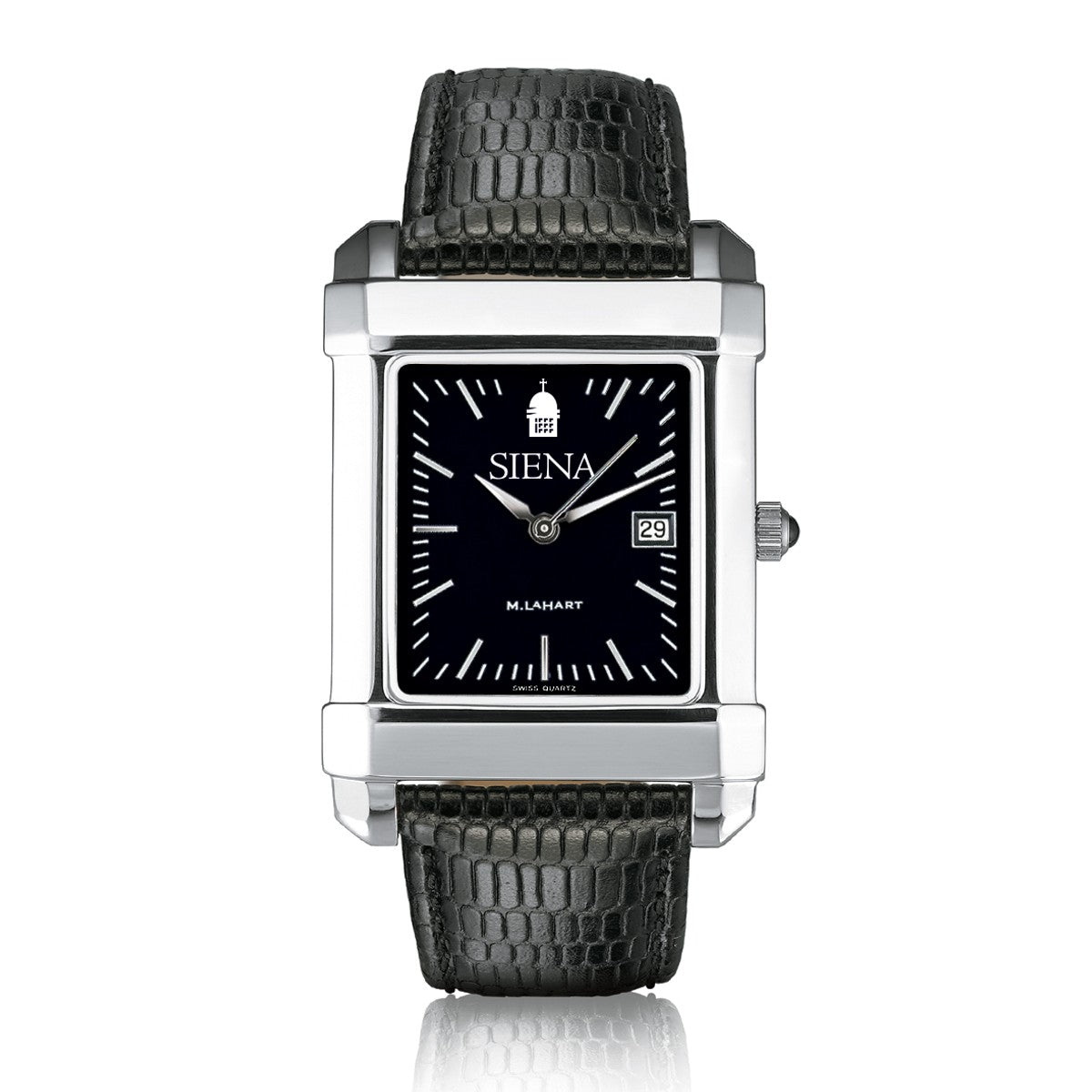 Siena College men's steel watch featuring the Siena Logo on black dial.