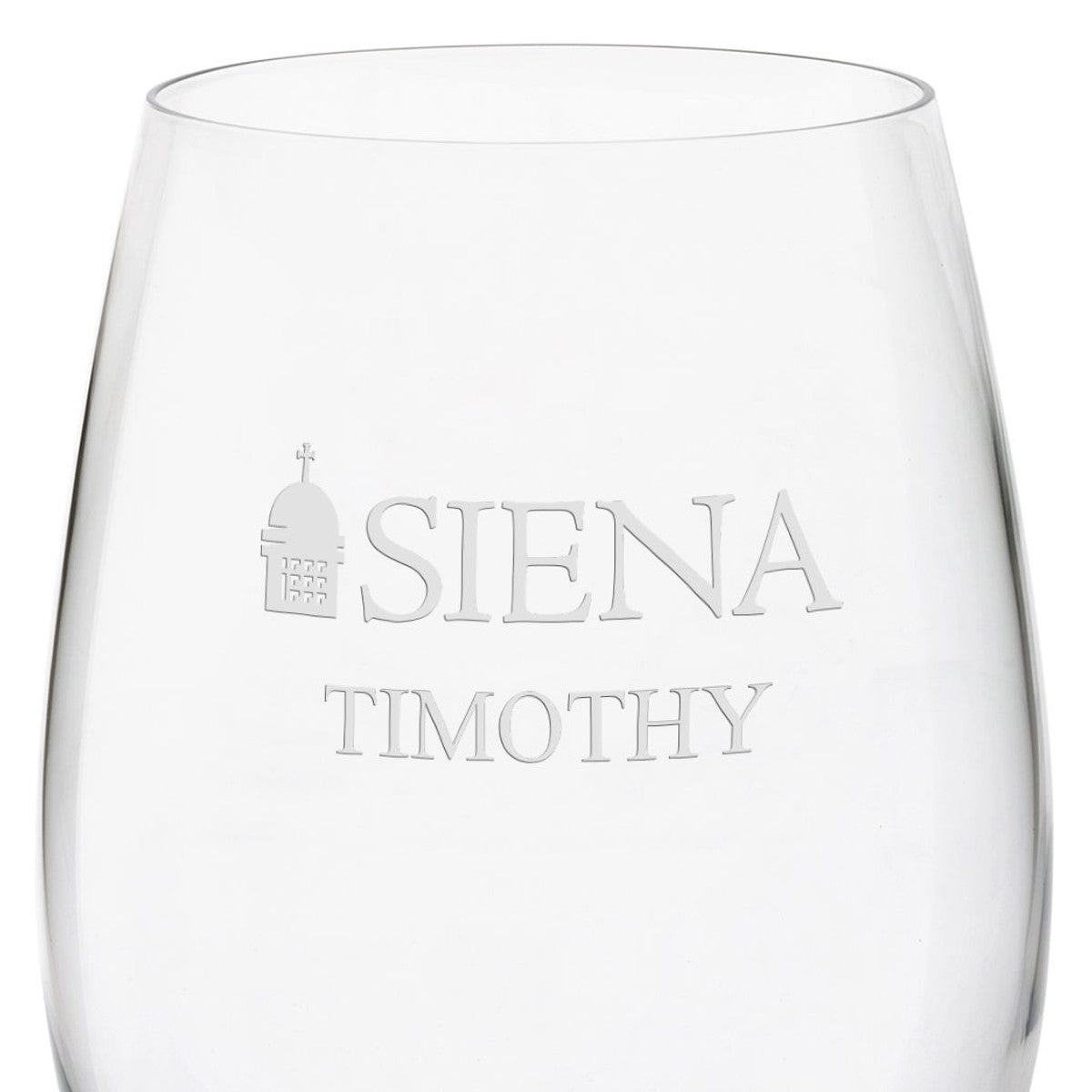 Fine Siena College wine glasses are an elegant touch for your table or bar. The Siena Logo is deep-etched on each glass.