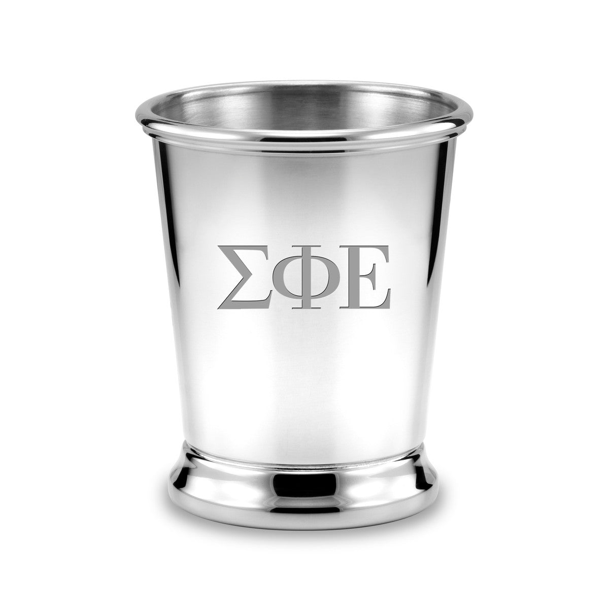Sigma Phi Epsilon pewter Julep cup, intricately engraved with Sigma Phi Epsilon Logo, makes a fine desk accessory. A stylish container for pens and pencils.