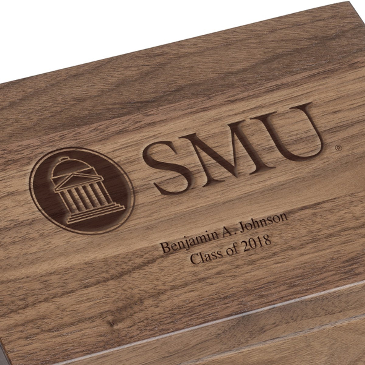 Our beautiful solid walnut desk box is made from hand-selected domestic walnut and crafted in the USA. Each box is hand finished with care, and proudly displays the SMU Logo on the lid.