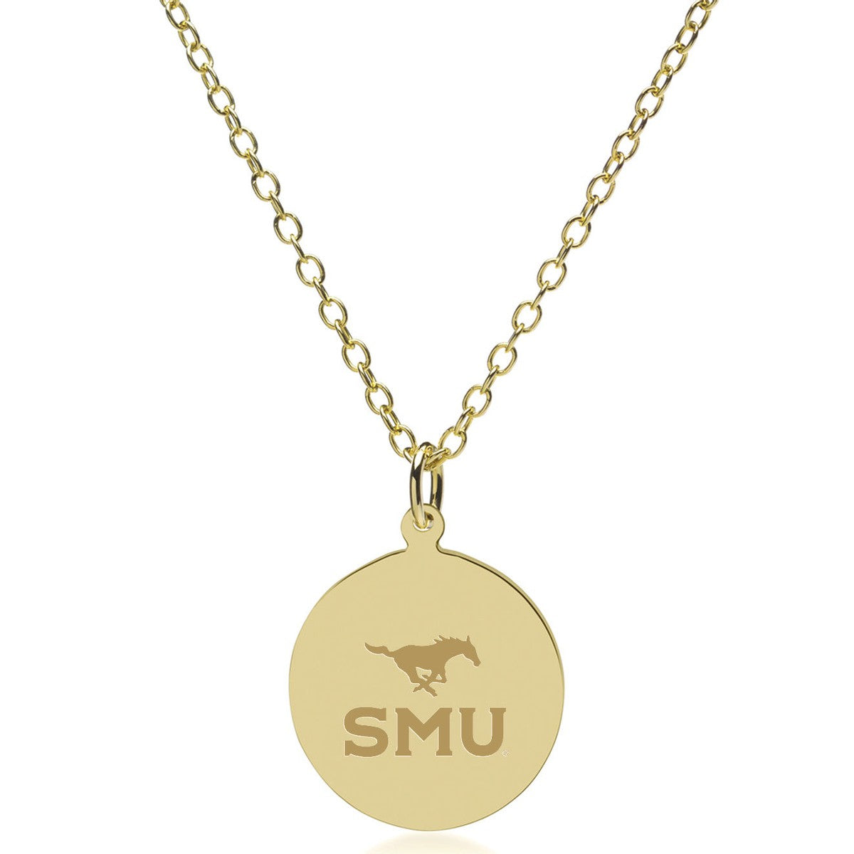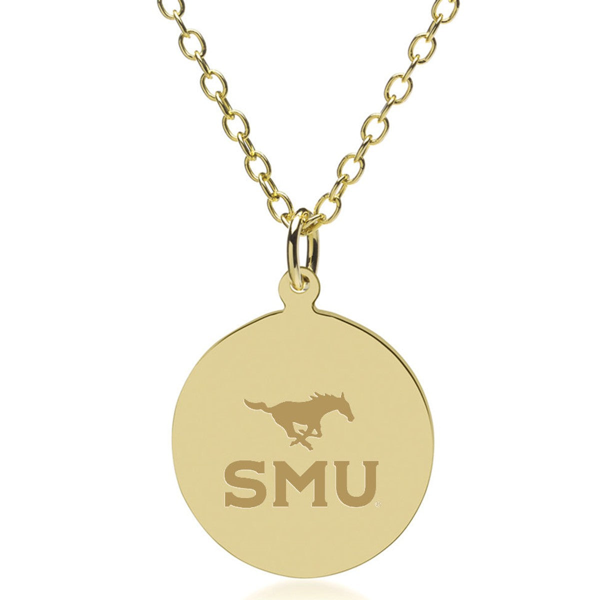 This solid 18-karat gold pendant and chain is an instant heirloom, featuring the SMU Logo beautifully engraved on the front with room for personalization on the back.