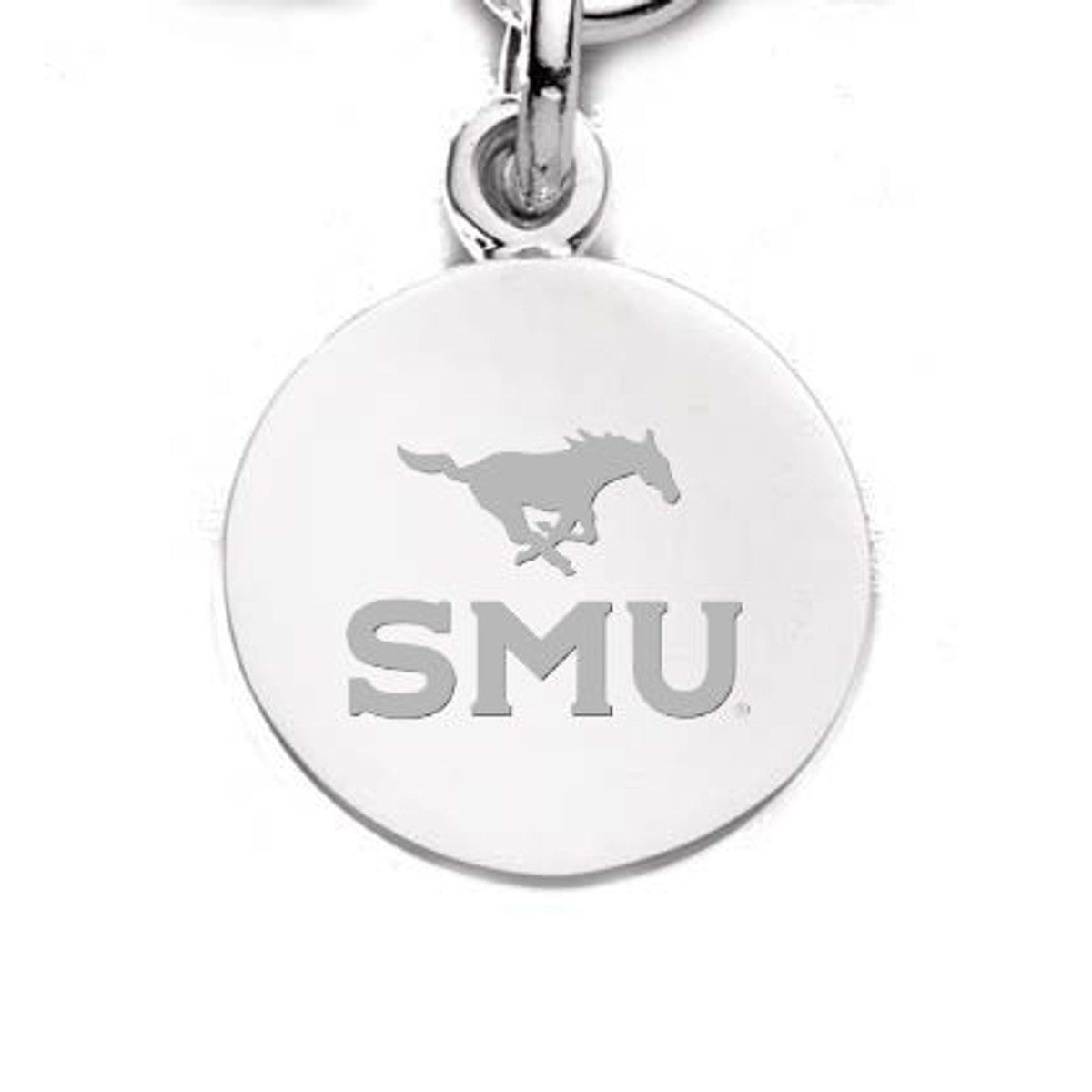 Southern Methodist University sterling silver, finely detailed charm features SMU seal on front.