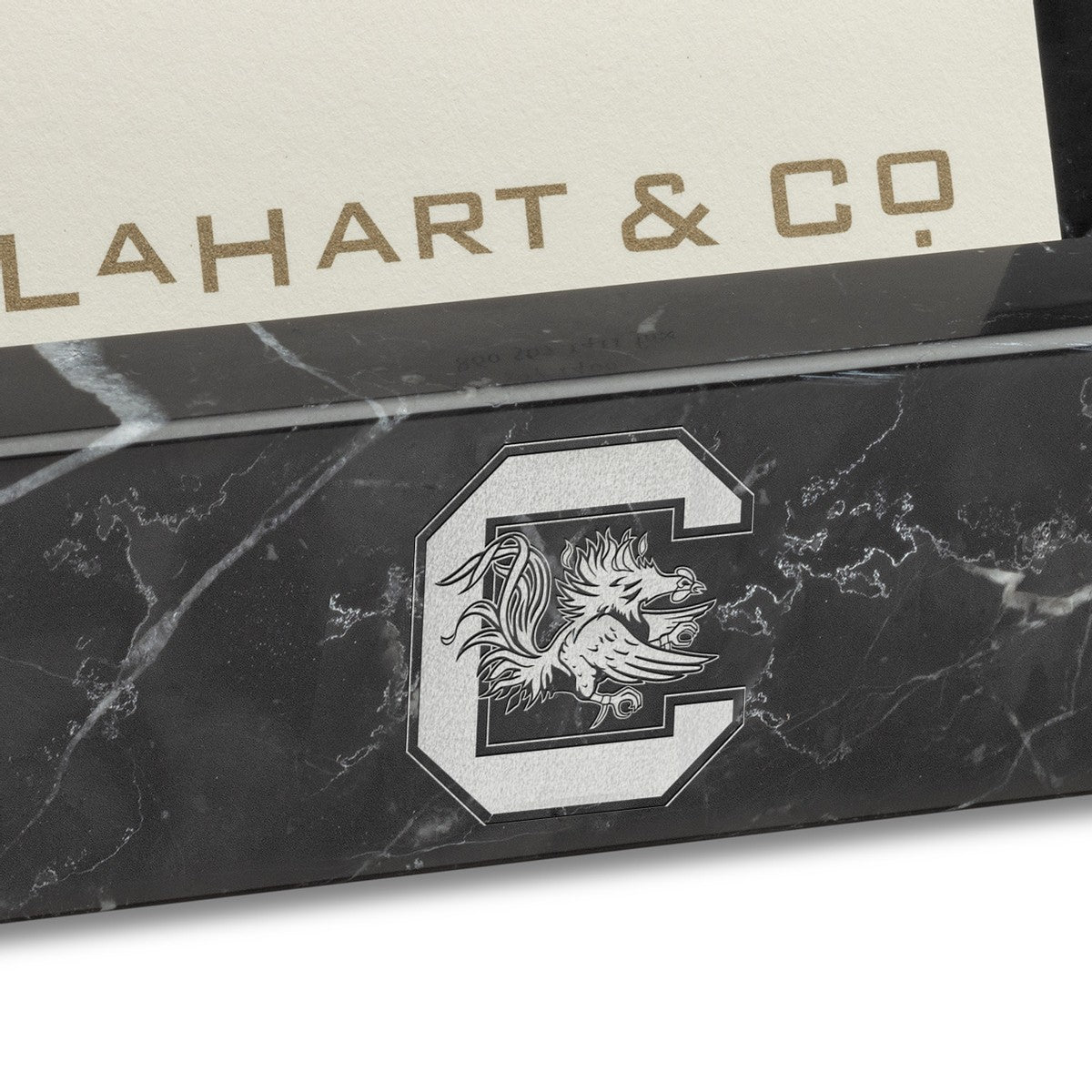 Perfect for new grads and seasoned professionals, the officially licensed University of South Carolina marble cardholder is an essential for the desk of South Carolina fans. The South Carolina Logo is elegantly featured on the front of this substantial, solid marble card holder and accommodates all standard size business cards.