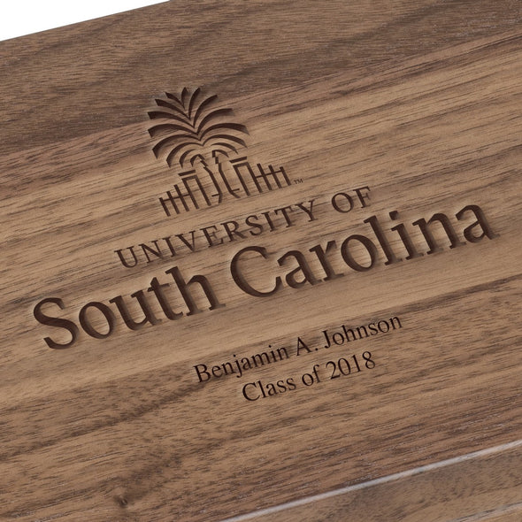 Our beautiful solid walnut desk box is made from hand-selected domestic walnut and crafted in the USA. Each box is hand finished with care, and proudly displays the South Carolina Logo on the lid.