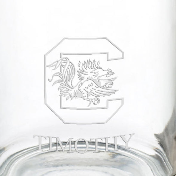 The South Carolina glass coffee mug is deep-etched with the University of South Carolina logo. Generously proportioned 13 oz glasses are a pleasure to hold. Your name can be added under the logo for free.