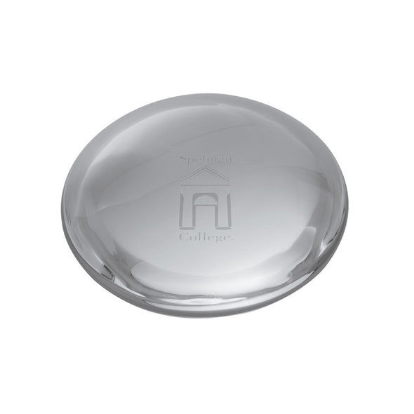 A proud display of Spelman pride for any office, the Spelman College Logo is prominently etched on this hand-crafted glass paperweight.