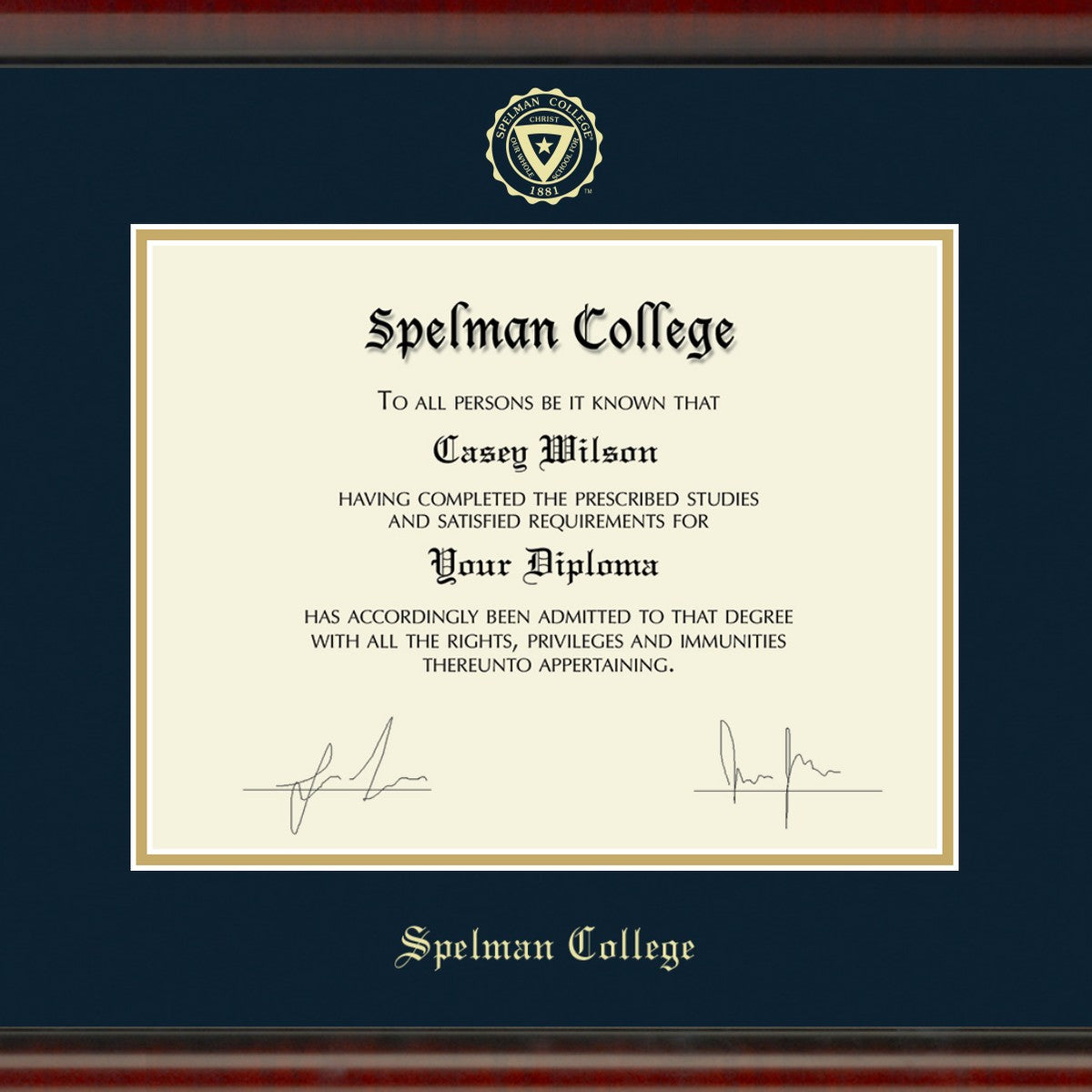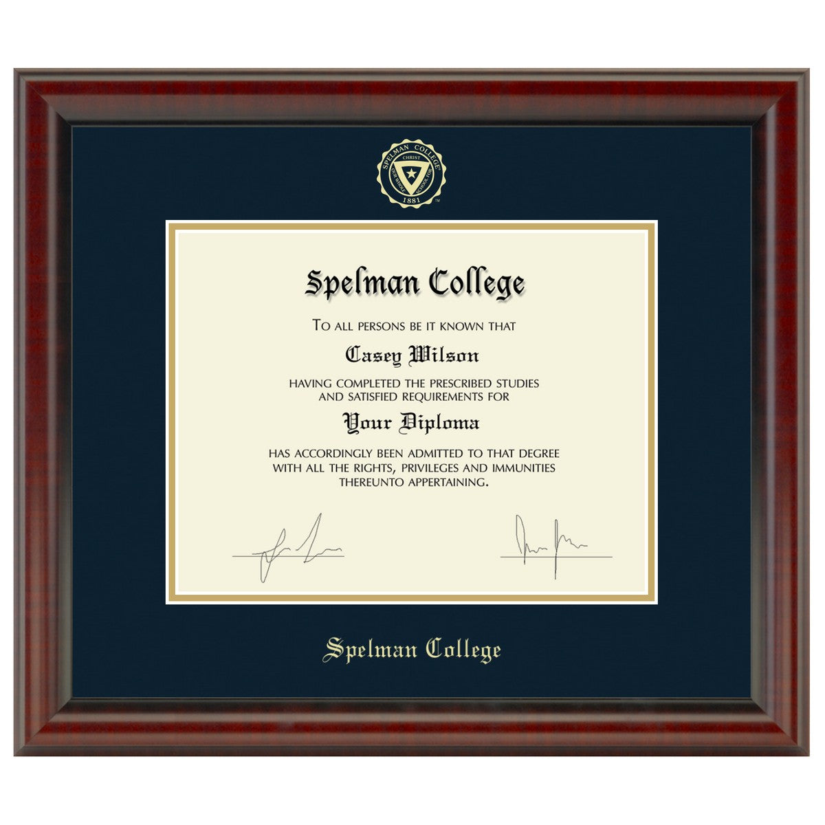 • Gold embossed Spelman College diploma seal