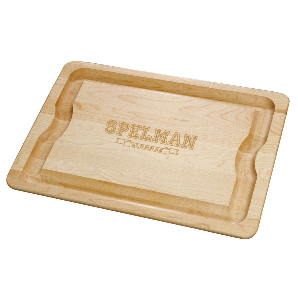 The Spelman College Maple Cutting Board is crafted from sturdy Maple with undercut handles and a wide groove to collect juices while you carve. Ample surface featuring the Spelman College Logo is suitable for both cutting and serving.