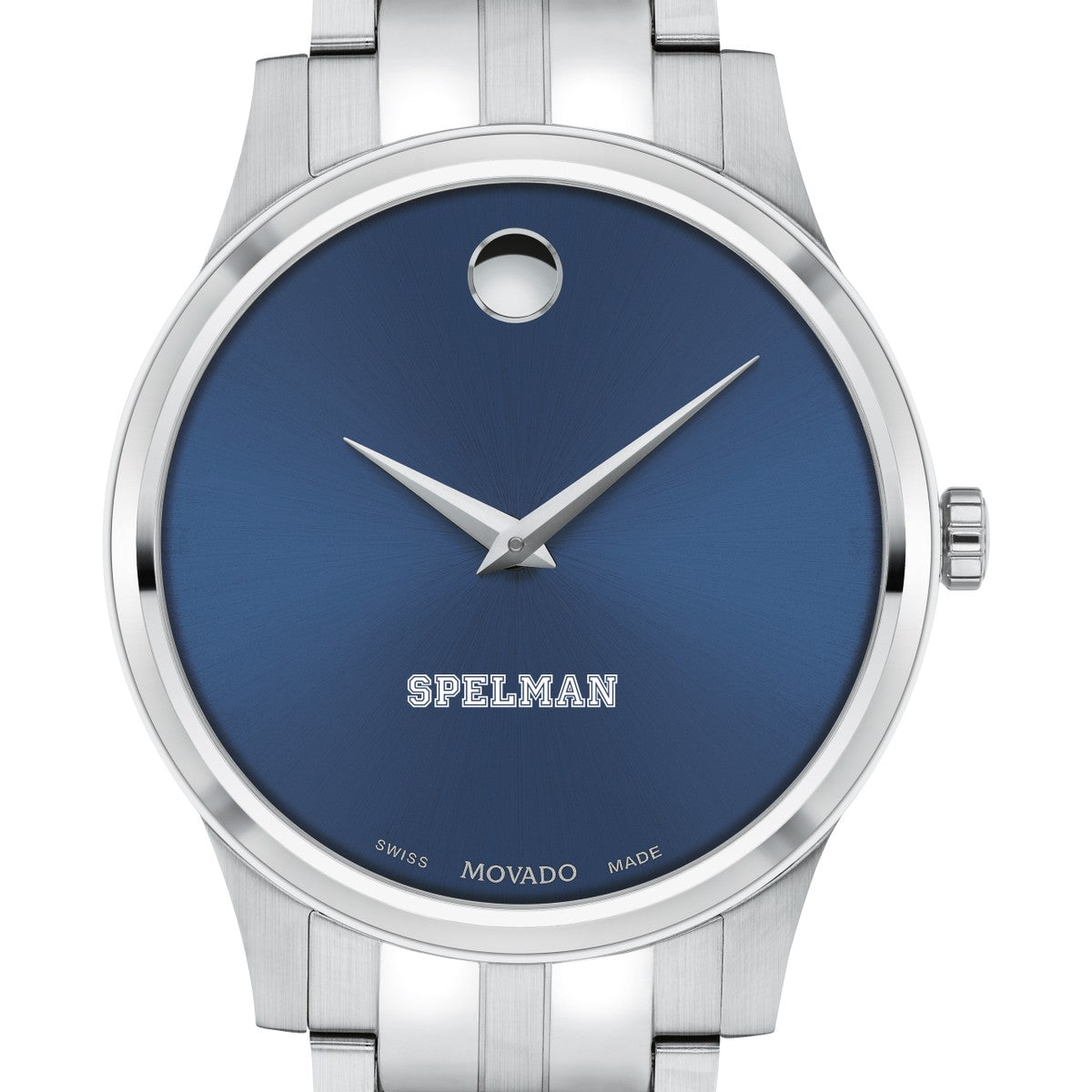 The Spelman College Men's Movado Collection watch boasts a striking blue dial featuring the iconic Spelman College Logo in full color. This timeless timepiece, renowned for its concave dot representing the sun at high noon, has been a symbol of elegance since its inception in 1947. Make it uniquely yours with free engraving without affecting order processing time.