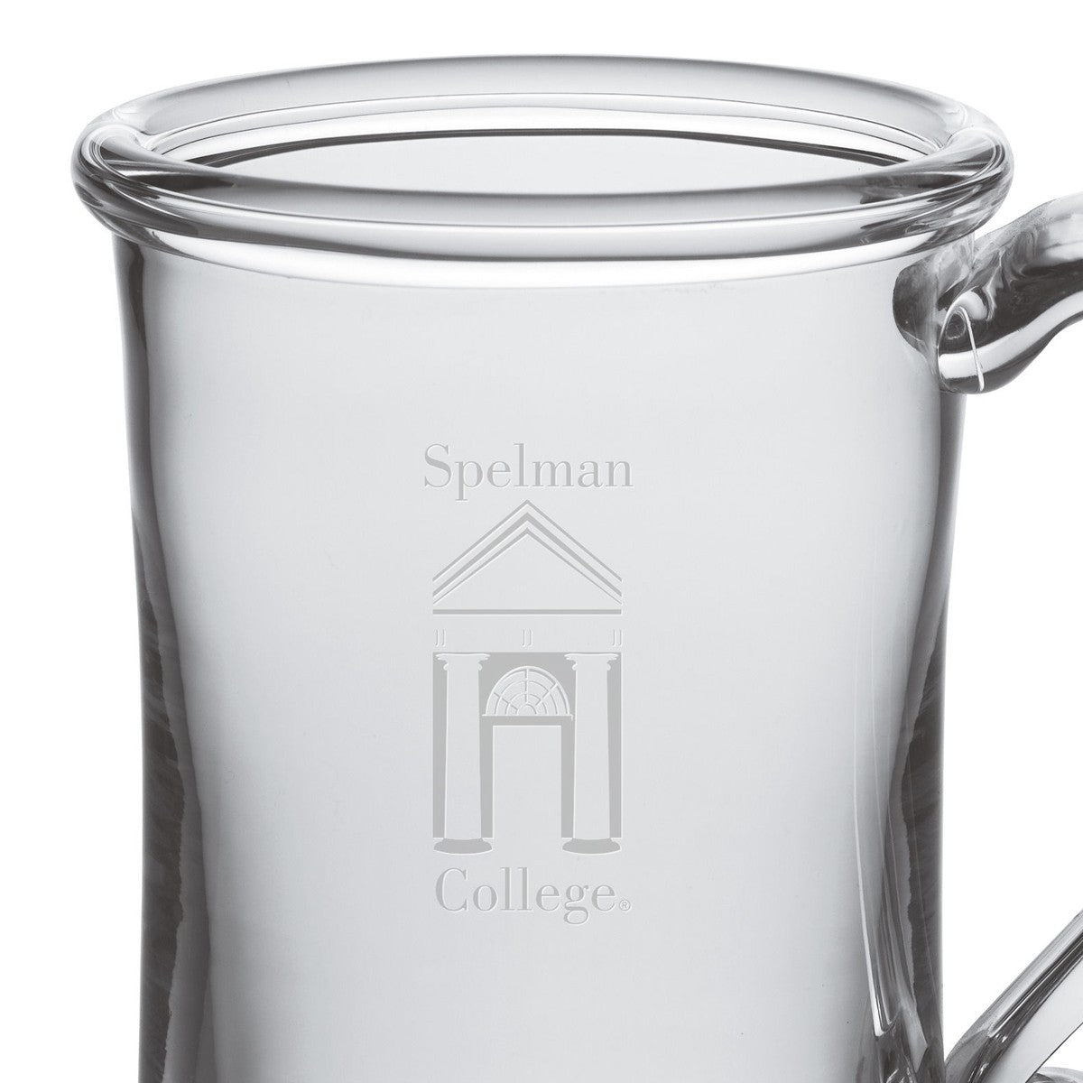 The Spelman Glass Tankard is an ideal choice if you're looking for a versatile glass. The enchantingly curved glass handle will help ensure that you don't spill a drop. The Glass Tankard has the Spelman College Logo handsomely etched on the hand-blown glass.