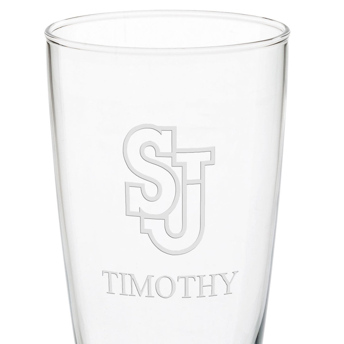 Fans can raise a glass to St. John's with these glasses. The St. John's Logo is deep-etched, and your name can be added under the logo for free.