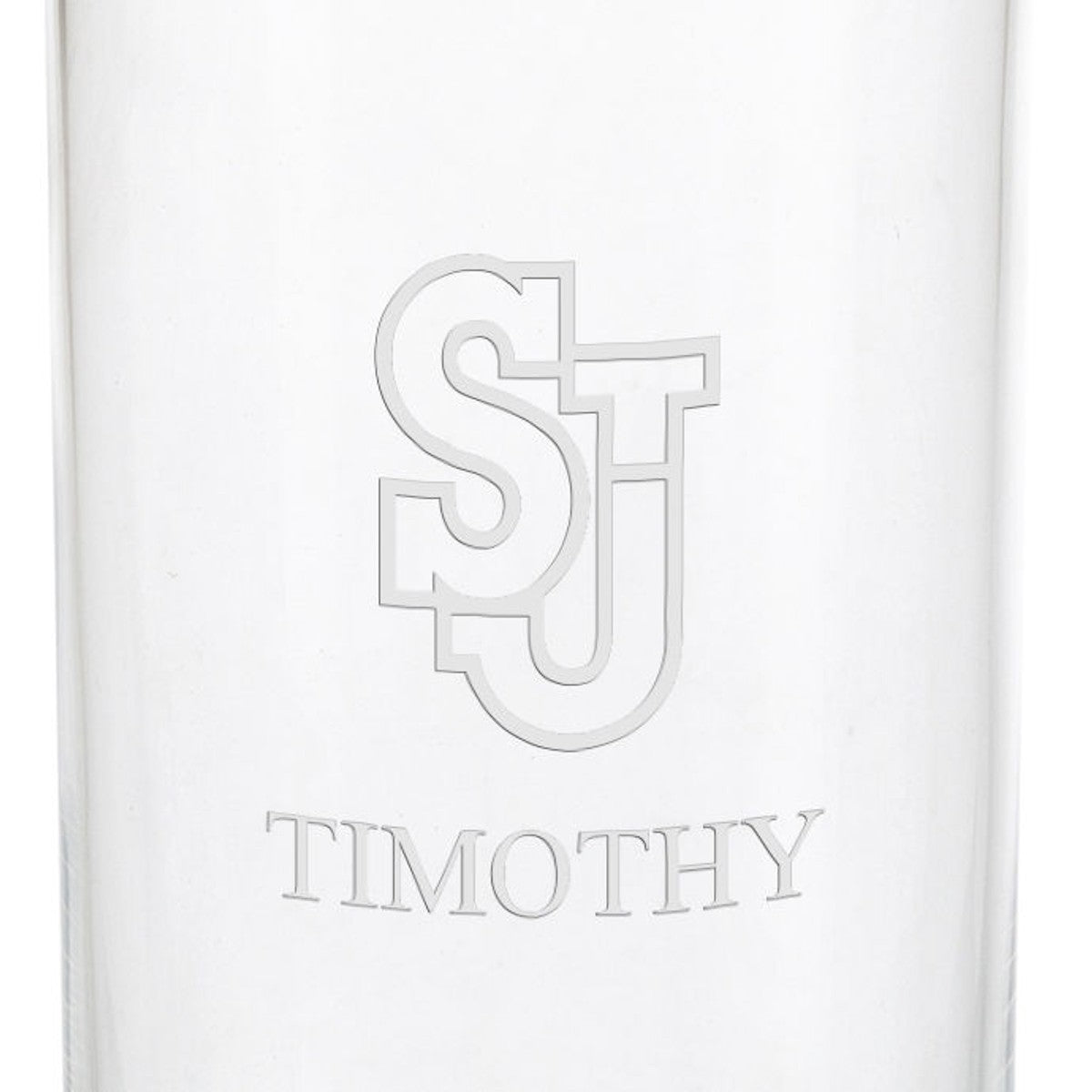 St. John's University iced beverage glasses have the St. John's Logo deep-etched on each glass. Generously proportioned 16-ounce glasses are a pleasure to hold.