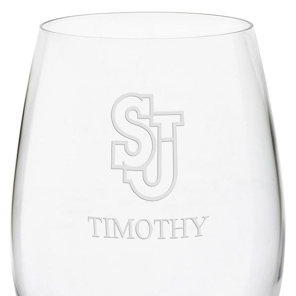 Fine St. John's University wine glasses are an elegant touch for your table or bar. The St. John's Logo is deep-etched on each glass.