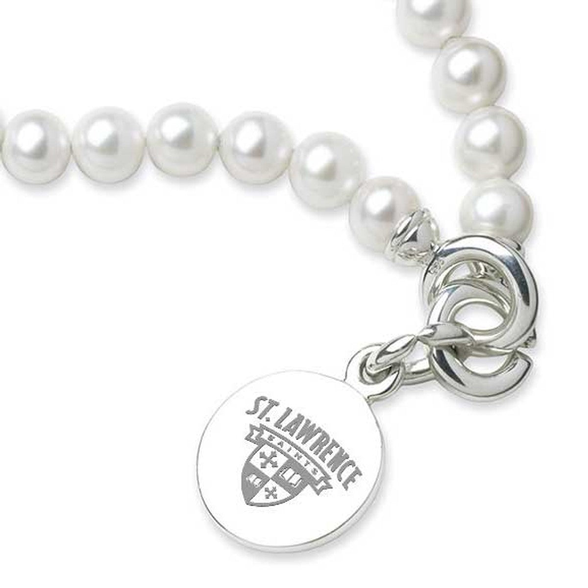 St. Lawrence University pearl bracelet and sterling silver St. Lawrence charm features the St. Lawrence Logo delicately engraved on front and interlocking "C" clasp.