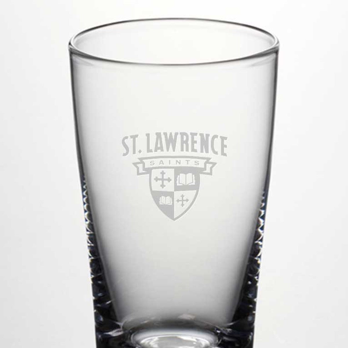 St. Lawrence Pint Glass features the St. Lawrence Logo handsomely engraved on the hand-blown glass. From its narrowly flared lip to its sleek, cylindrical body and sturdy, solid base, this pint glass is a classic.