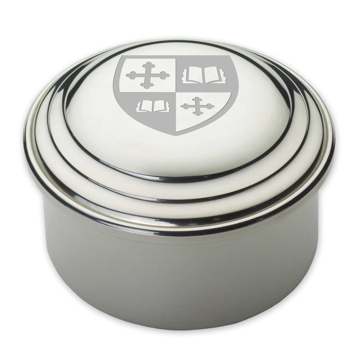St. Lawrence University pewter keepsake box is a beautiful space to store your treasures and features the St. Lawrence Logo on its lid.
