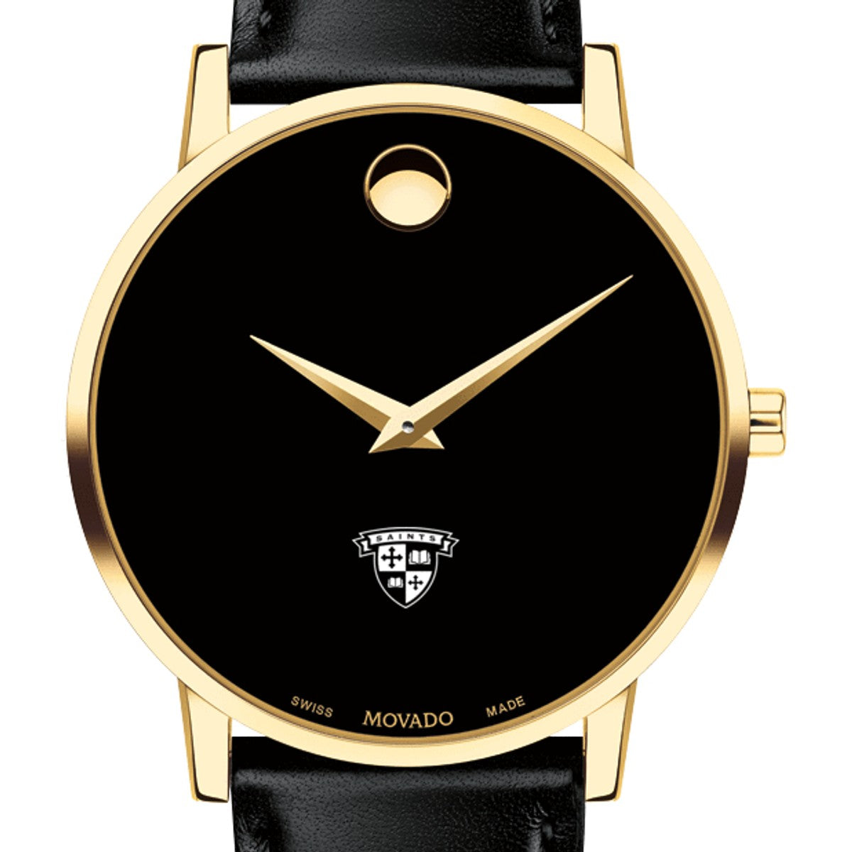 St. Lawrence University Men's Movado Museum watch features the St. Lawrence Logo in full color at 6 o'clock on black dial. Created in 1947, the iconic concave dot symbolizes the sun at high-noon. Complimentary personal engraving.