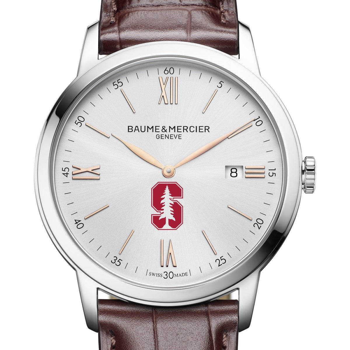 A masterpiece of Swiss craftsmanship, the Stanford Men's Baume et Mercier 42mm Classima Watch features a silver sun-satin dial with the Stanford logo, gilded hands, and a luxurious brown leather strap. This timepiece offers refined elegance for any occasion, making it the perfect statement piece for the modern gentleman. Complimentary personal engraving.