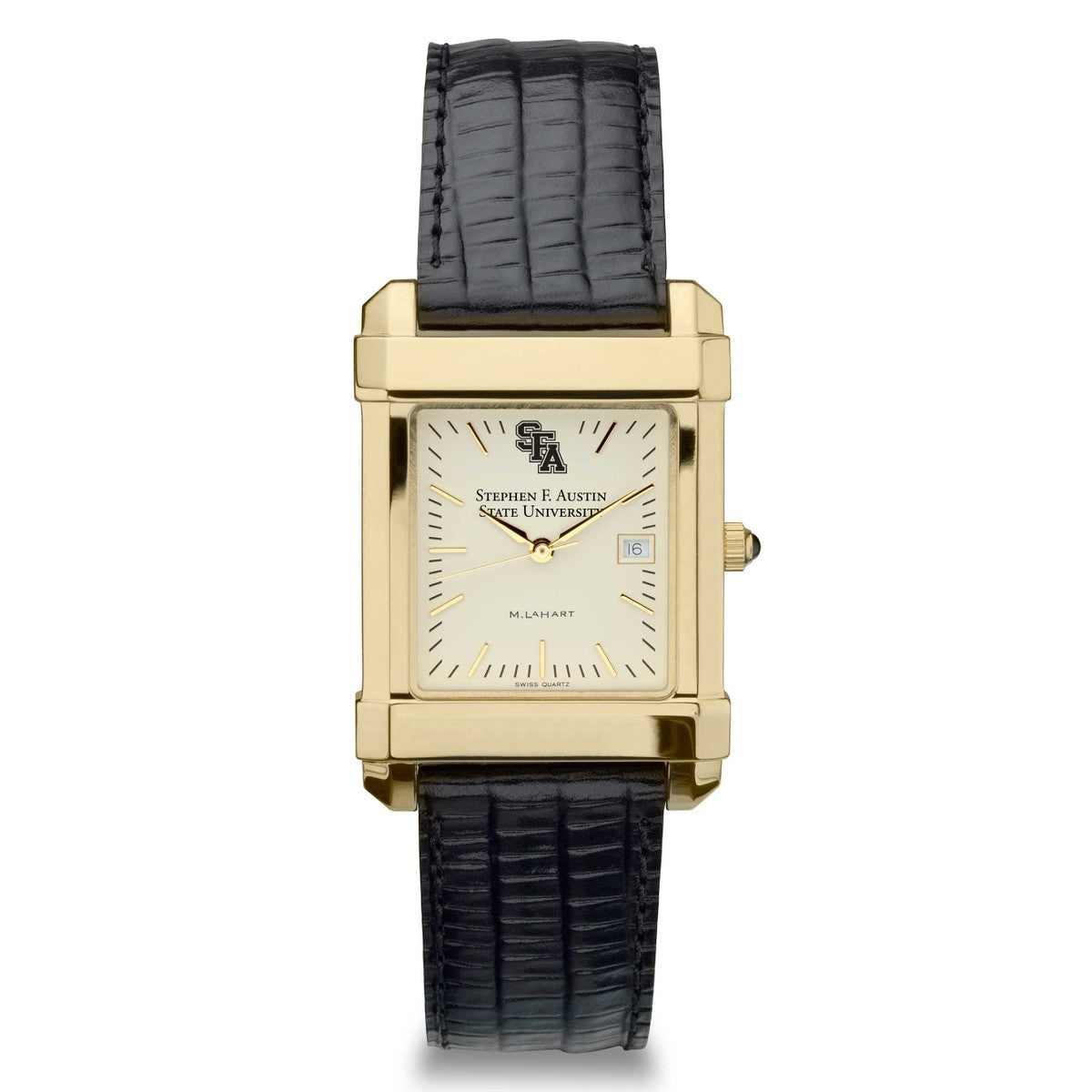 Stephen F. Austin State University men's gold watch featuring the SFASU logo on cream dial. Free Engraving on all watches.