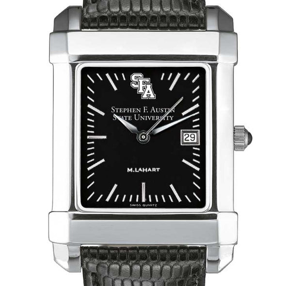 Stephen F. Austin State University men's steel watch featuring the SFASU logo on black dial.