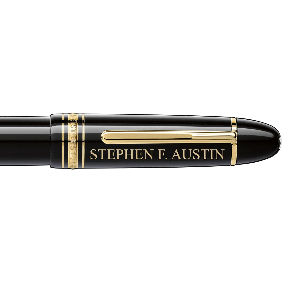 The legendary Stephen F. Austin State University Meisterstück 149 Piston Fountain Pen has been the writing instrument of choice for nearly 100 years. From the 18-karat gold nib to the inlaid Montblanc emblem, the Meisterstück 149 is a joy to hold, measuring 144 mm. The precious black resin barrel features gold-coated detailing and is handmade in Hamburg, Germany.