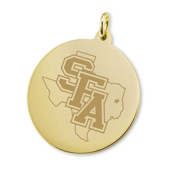 Stephen F. Austin State University 18-karat charm features SFASU logo on front.