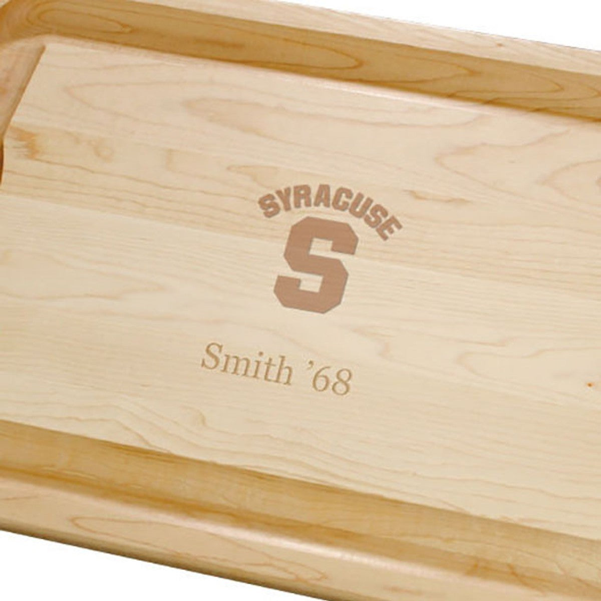 The Syracuse University Maple Cutting Board is crafted from sturdy Maple with undercut handles and a wide groove to collect juices while you carve. Ample surface featuring the Syracuse logo is suitable for both cutting and serving.