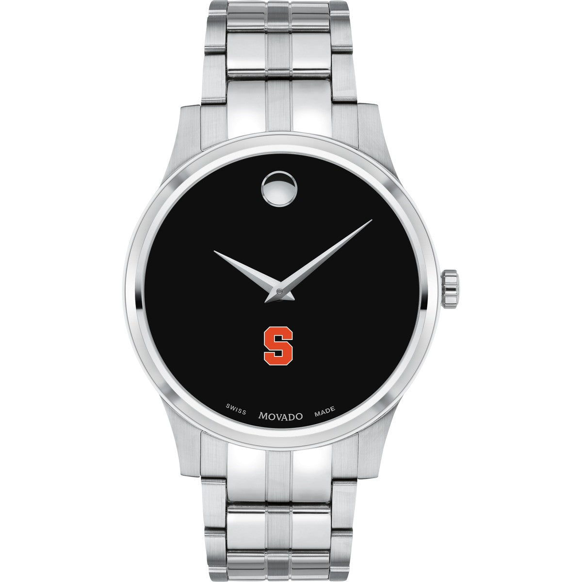 The Syracuse University Men's Movado Collection watch showcases the iconic Syracuse logo in full color on a sophisticated black dial. This classic timepiece, featuring the renowned concave dot symbolizing the sun at high noon, has been a design masterpiece since its creation in 1947. Personalize your watch with free engraving without any delay to your order.