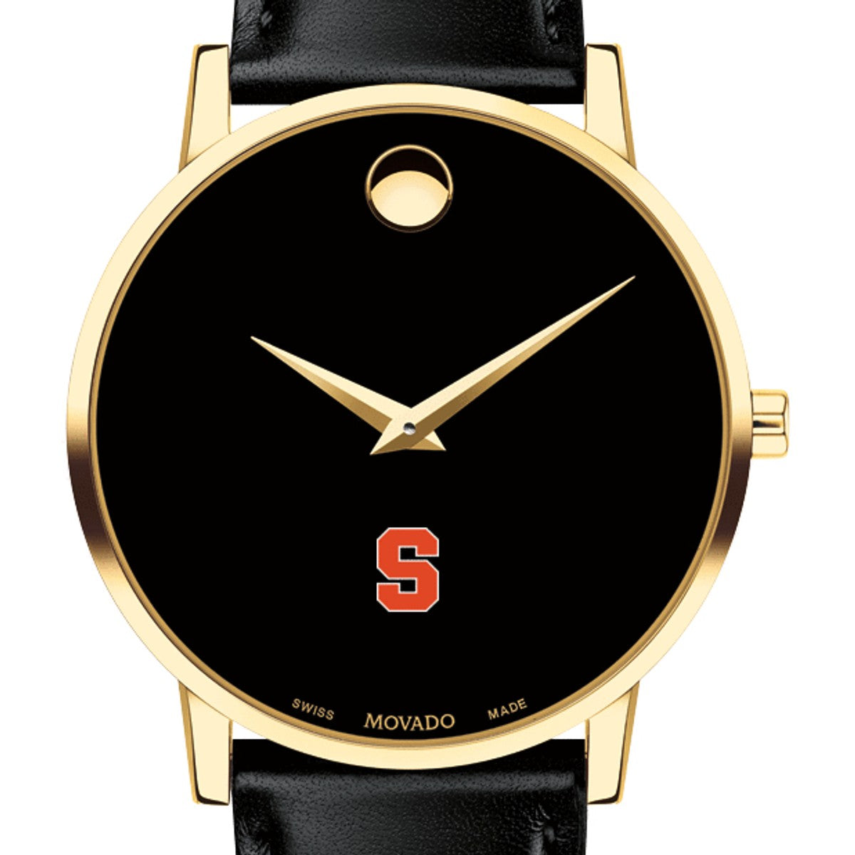 Syracuse University Men's Movado Museum watch features the Syracuse logo in full color at 6 o'clock on black dial. Created in 1947, the iconic concave dot symbolizes the sun at high-noon. Complimentary personal engraving.