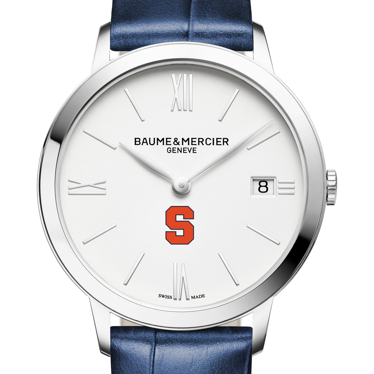 Add a touch of luxury with the Syracuse Women's Baume et Mercier 36.5mm Classima Watch. Its luminous white dial with Roman numerals, the Syracuse logo, and vibrant blue leather strap create a chic and refined look, perfect for any occasion. Complimentary personal engraving.