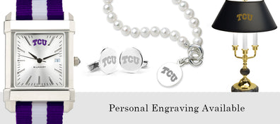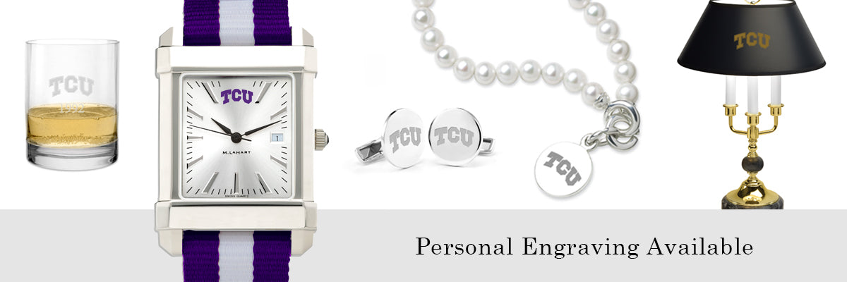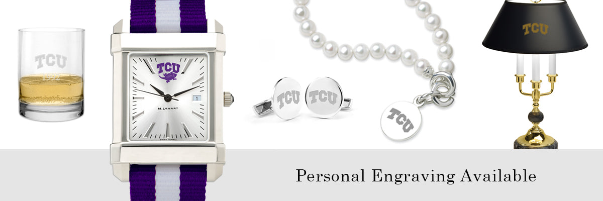 Discover a stunning selection of officially licensed gifts and accessories for Texas Christian University at M.LaHart & Co. Our diverse collection features jewelry, glassware, watches, diploma frames, and other exclusive items. Our range offers an ideal way to showcase your Horned Frog pride. Browse our selection today and find the perfect item to embody your TCU spirit.