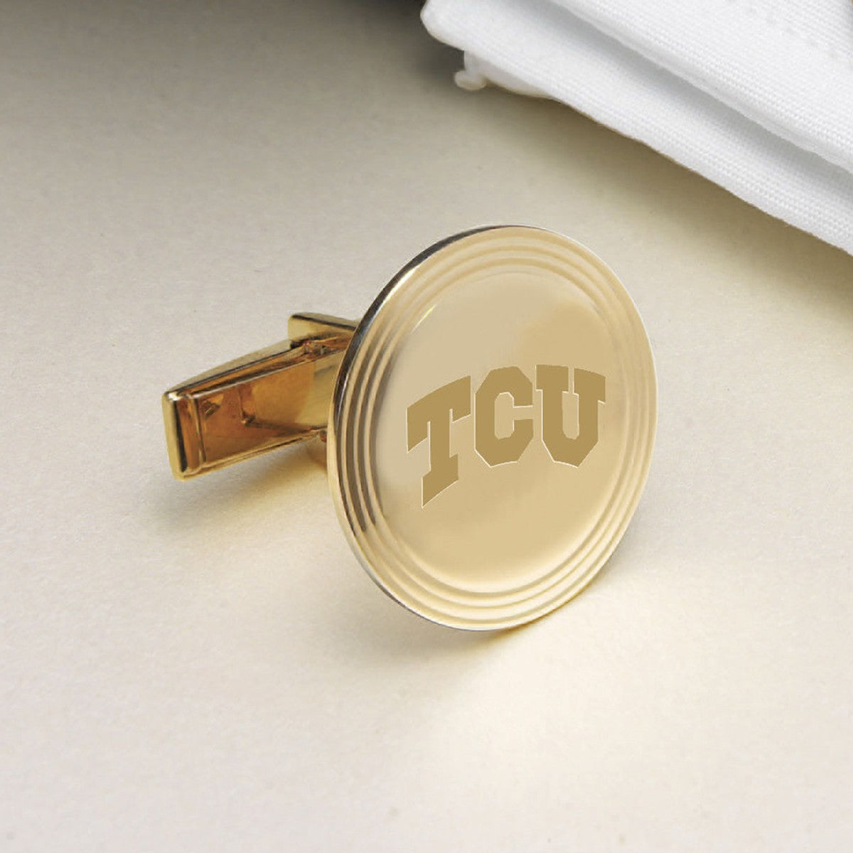 Texas Christian University 14-karat gold cufflinks are elegantly and richly detailed with the TCU Logo, making an ideal custom gift.
