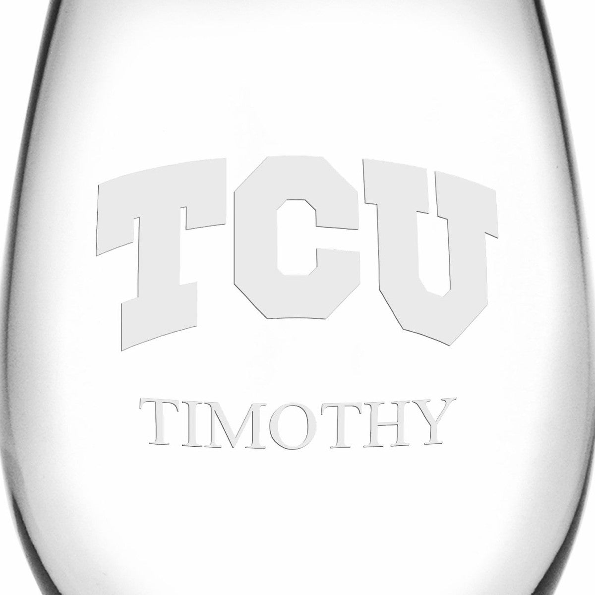These modern Texas Christian University stemless wine glasses are perfect for every occasion and any type of wine. Each glass is made in the USA and laser etched with TCU Logo.