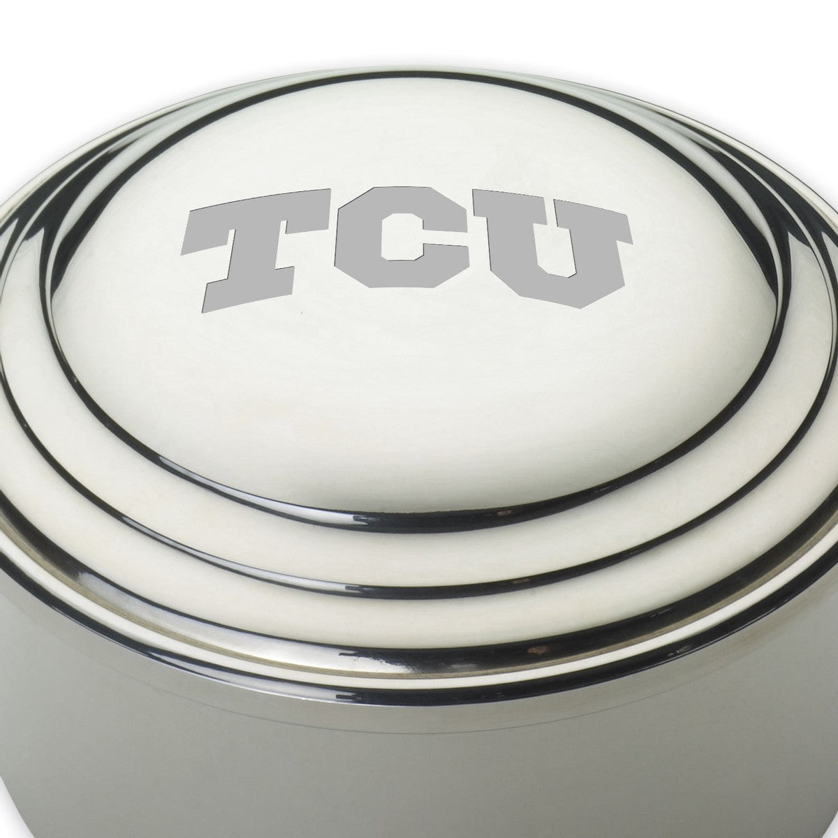 Texas Christian University pewter keepsake box is a beautiful space to store your treasures and features the TCU Logo on its lid.