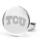 Our Texas Christian University sterling silver cufflinks are a classic and enduring gift, featuring the TCU Logo finely detailed. Add engraving with graduation year or initials for a lasting commemorative.