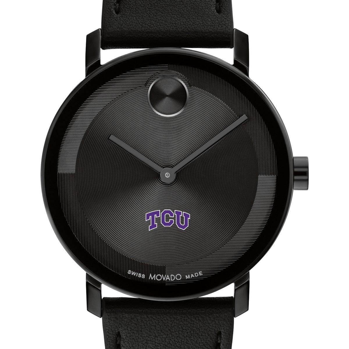 Texas Christian University Men's Movado BOLD with Black Leather Strap