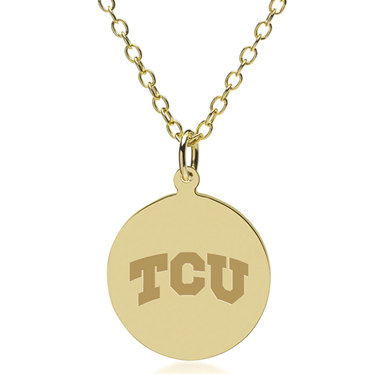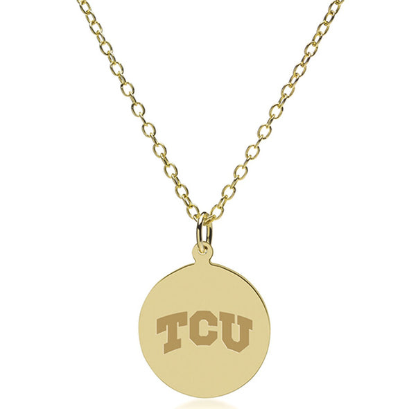 This solid 18-karat gold pendant and chain is an instant heirloom, featuring the TCU Logo beautifully engraved on the front with room for personalization on the back.