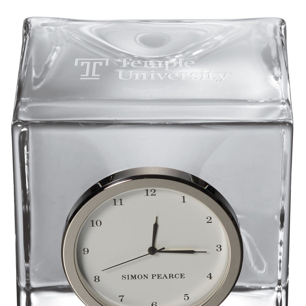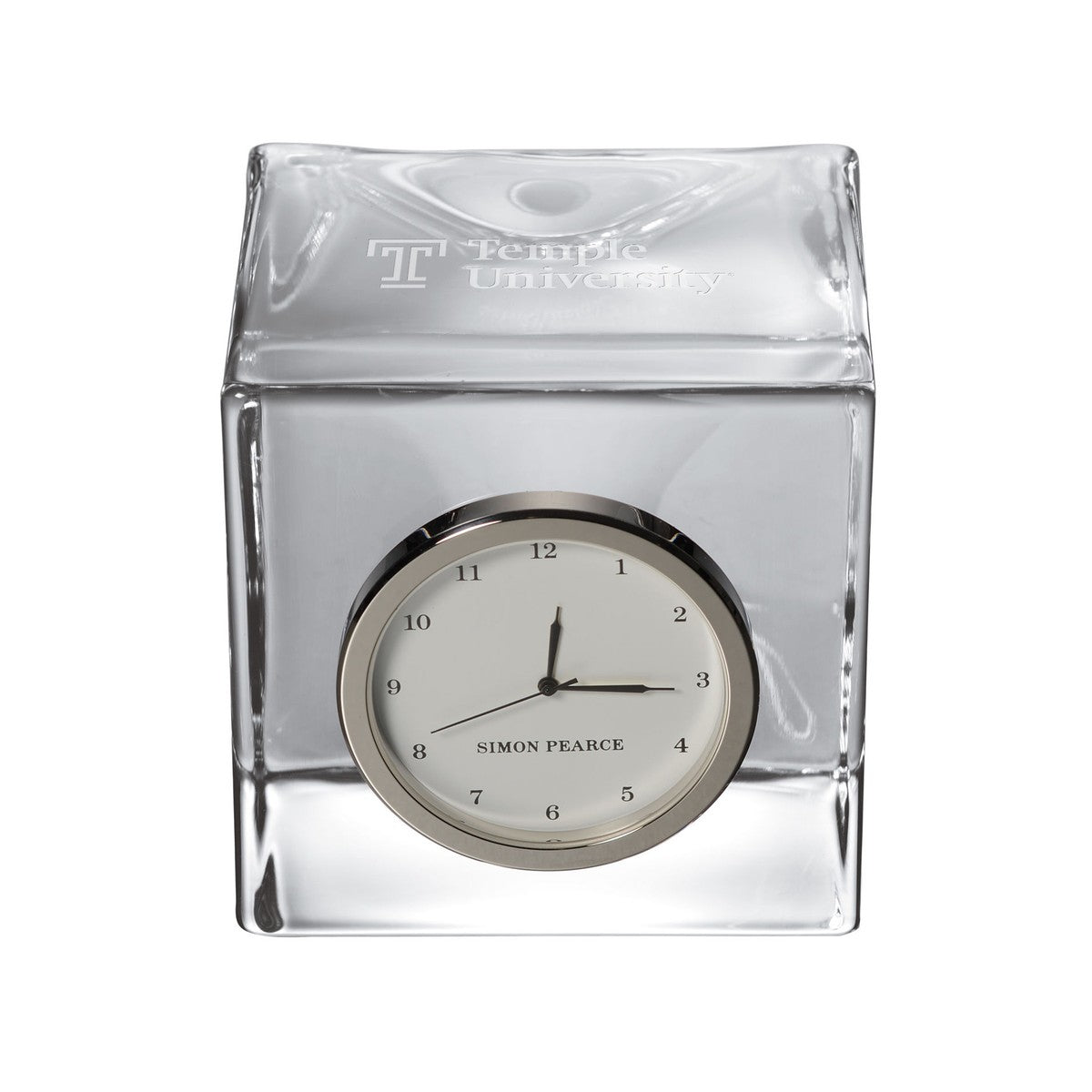 The Temple University Glass Desk Clock is distinctly etched with the Temple Logo, and is a great addition to any surface. The clock includes a traditional numbered face with a sweep hand to count the seconds.