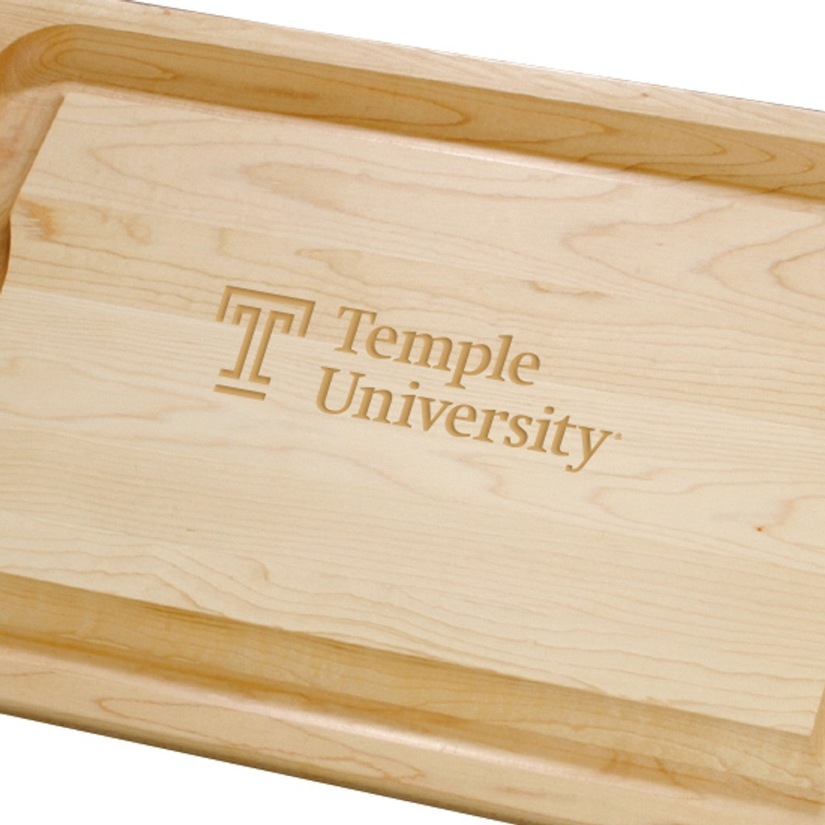 The Temple University Maple Cutting Board is crafted from sturdy Maple with undercut handles and a wide groove to collect juices while you carve. Ample surface featuring the Temple Logo is suitable for both cutting and serving.